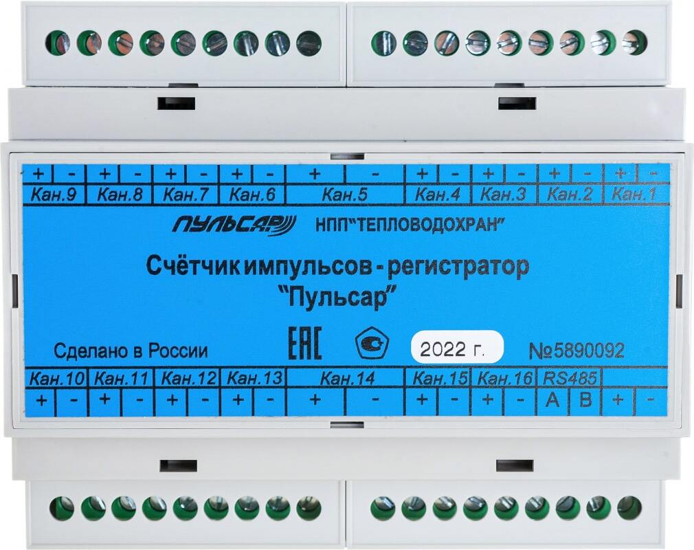 Счетчик импульсов-регистратор Пульсар Н00000243 16-канальный без индикатора;RS-485; питание 7...24В
