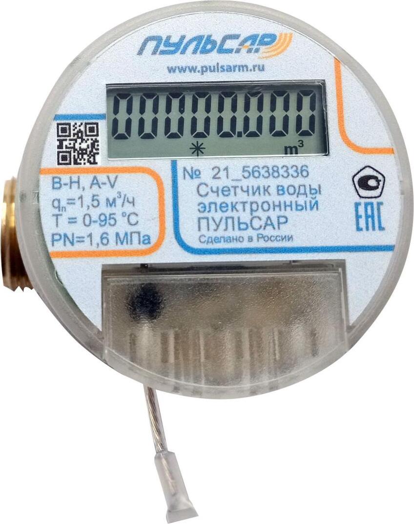 Счетчик воды электронный универсальный Пульсар Н00019603 модель 1; Ду20; Qn=2,5 м3/час; L=130мм