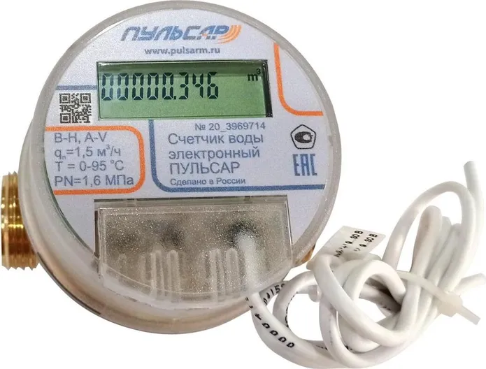 Счетчик воды универсальный Пульсар 1 Н00014365 Ду15 Qn=1,5 м3/час L=110мм электронный УТ-00147132