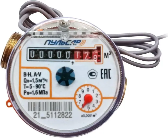 Счетчик воды одноструйный «Пульсар» с визуальным считыванием предназначен для измерения объема горячей и холодной питьевой воды по СанПиН 2.1.4.1074-01 и сетевой воды, протекающей по трубопроводу в системах холодного и горячего водоснабжения. Данные выводятся на переднюю панель вычислительного механизма. Для их считывания необходим непосредственный доступ к счетчику.
