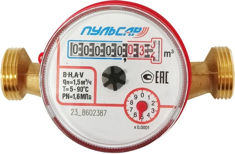 Счетчик воды одноструйный «Пульсар» с визуальным считыванием предназначен для измерения объема горячей и холодной питьевой воды по СанПиН 2.1.4.1074-01 и сетевой воды, протекающей по трубопроводу в системах холодного и горячего водоснабжения. Данные выводятся на переднюю панель вычислительного механизма. Для их считывания необходим непосредственный доступ к счетчику.