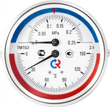 Тип ТМТБ. Термоманометр аксиальный — комбинированный прибор, предназначенный для измерения температуры и избыточного давления неагрессивных к медным сплавам сред в системах теплоснабжения и водоснабжения.