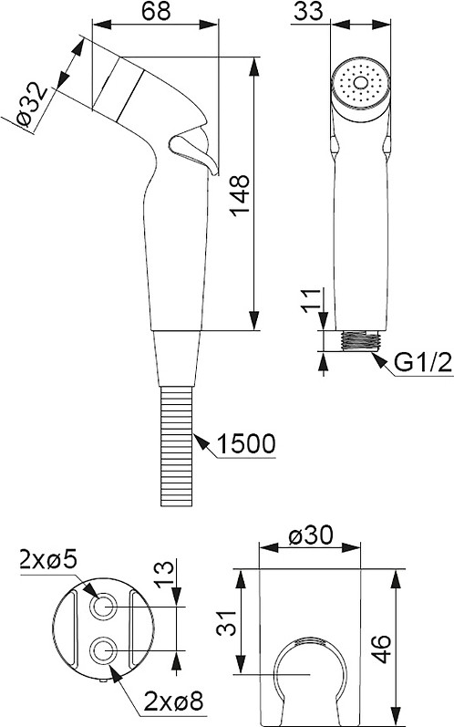 - гигиенический душ, держатель душевой лейки, душевой шланг