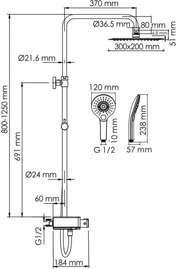 Душевая система WasserKraft A113.069.101.CH Thermo с термостатом