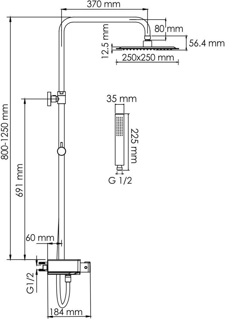 - аэратор, душевая лейка, верхний душ, термостат, держатель душевой лейки, душевой шланг