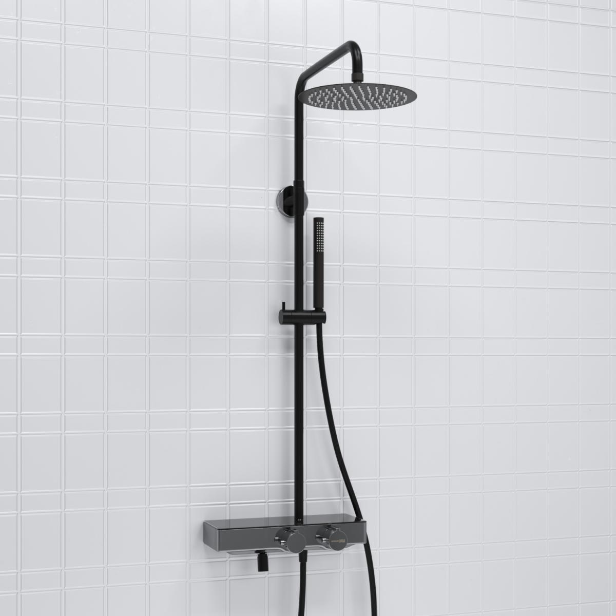 Душевая система WasserKraft A114.258.217.CB Thermo черная, с термостатом