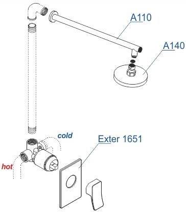 - скрытая монтажная часть, верхний душ, смеситель