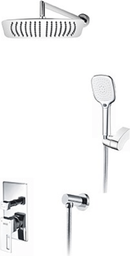 - душевая лейка, скрытая монтажная часть, верхний душ, держатель душевой лейки, душевой шланг, смеситель
