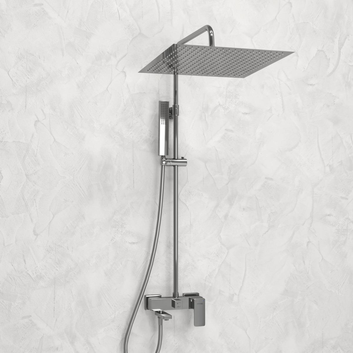 - душевая лейка, верхний душ, держатель душевой лейки, душевой шланг, смеситель