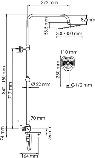 - Стойка для душа, Ø 22 мм регулируемая по высоте