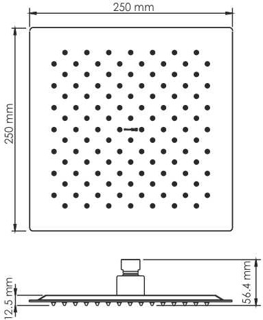 - Душевая насадка 250 x 250 мм, 112 форсунок, нержавеющая сталь