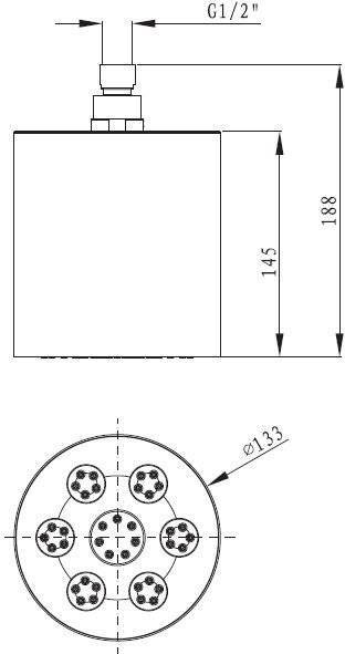 - Размер верхнего душа, см: