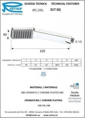 Душевая лейка Remer 317SQX УТ-00151376