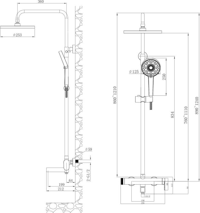 Душевая система AGGER Sweet гармонично дополнит интерьер ванной комнаты в современном стиле. Управление осуществляется с помощью эргономичного рычага и поворотного дивертора, создавая идеальные условия для принятия водных процедур. Однозахватный смеситель для ванны/душа с поворотным изливом изготовлен из высококачественной нержавеющей стали, не подверженной окислению от постоянного контакта с водой. Покрытие в цвете матовый черный, за которым просто ухаживать мягкой салфеткой, нанесено методом порошковой окраски с многоступенчатой системой подготовки и высокотемпературной обработкой. Встроенный аэратор экономит воду и, обогащая её воздухом, делает струю мягкой и без брызг. Регулируемый по высоте и наклону верхний душ (d253 мм) и ручная лейка (d125 мм, 3 режима струи) доставят истинное удовольствие при принятии водных процедур (ручная лейка и верхний душ с защитой от известкового налета). Штанга (860-1210 мм) телескопическая, держатель ручного душа с регулировкой угла наклона, шланг 1500 мм PVC с защитой от перекручивания.