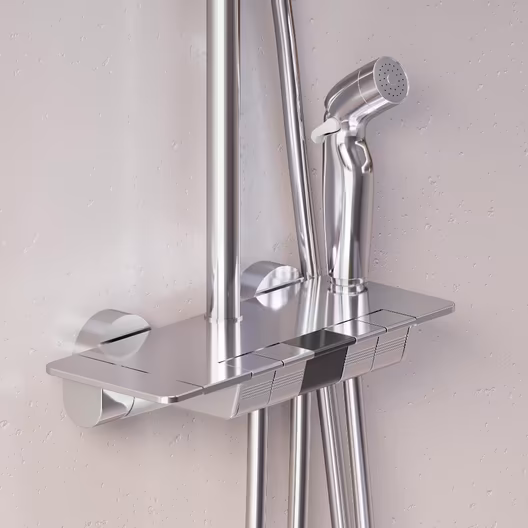 Душевая система Gala обладает мягкими геометричными формами, которые идеально впишутся в современную ванную комнату. Минималистичная и стильная, она отличается самым широким функционалом в линейке и удовлетворит даже искушенного пользователя. Максимальная безопасность и технологичность: термостатический картридж 35 мм обеспечивает точную настройку температуры и напора воды. Душевая система оснащена автоматическим дисплеем, отражающим температуру воды в реальном времени. Непревзойдённый комфорт и удобство: тонкий латунный корпус выполнен в виде компактной полочки, где вы можете хранить все необходимые вещи. Благодаря телескопической штанге с диапазоном регулировки в 400 мм водные процедуры будут одинаково комфортны абсолютно для всех членов семьи. Простота и минимализм во всем: переключайте потоки воды между изливом, гигиеническим душем, ручной и тропической лейкой, а также плавно управляйте напором воды нажатием нескольких клавиш. Настоящее SPA прямо у вас дома: наслаждайтесь увеличенным размер тропической лейки с регулируемым углом наклона (220 мм) и 3-мя режимами ручного душа. Возможность включения 2-х или 3-х режимов одновременно сделает ваши ежедневные ритуалы незабываемыми.