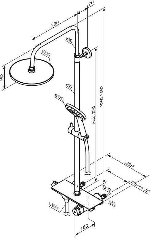 Благодаря телескопической штанге с диапазоном регулировки 400 мм ежедневные процедуры будут одинаково комфортны для людей любого роста.
