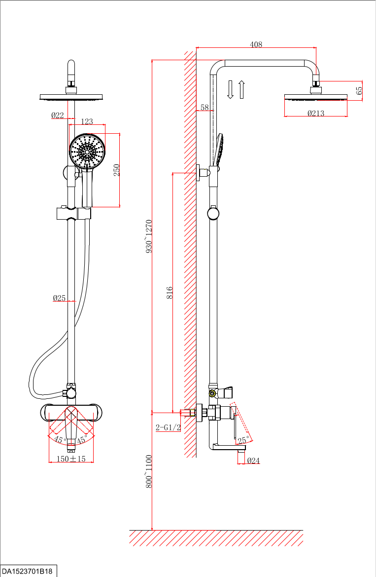 Душевая система D&K Bayern.Fürth DA1523701B18 хром