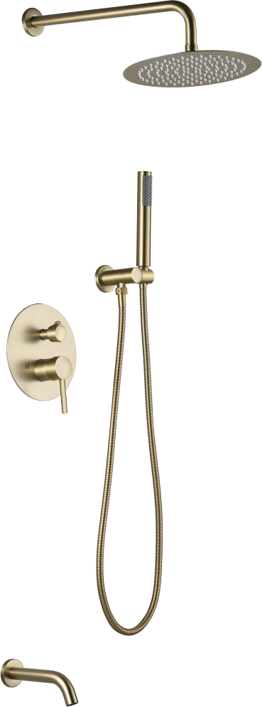 | Смеситель скрытого монтажа с переключателем: корпус - латунь кат. A, картридж ESKO - 35 мм,переключатель помповый с фиксатором. Лейка верхнего душа: диаметр 226 мм,материал - ABS пластик/золото. Держатель верхнего душа с отводом: длина 376 мм, нерж.сталь/золото. Ручная лейка: диаметр 110 мм, 5 режимов. Душевой шланг 1,6 м: армированный ПВХ, FreeRotation. Излив: латунь, длина 20 см, дивертор с фиксатором. |