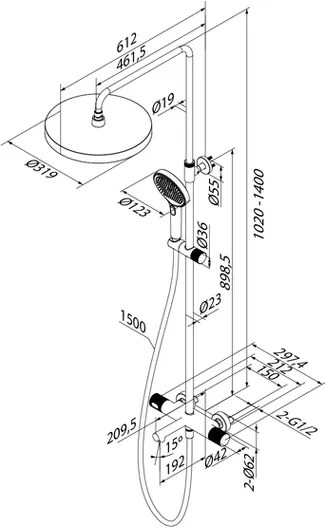 Продуманная функциональность: внушительная верхняя лейка Ø32 см обеспечит всеобъемлющий поток, ручная лейка с 3 режимами, регулируемая до 140 см душевая стойка подходит для любого роста. Гибкий и надёжный силиконовый шланг 1,5 м.