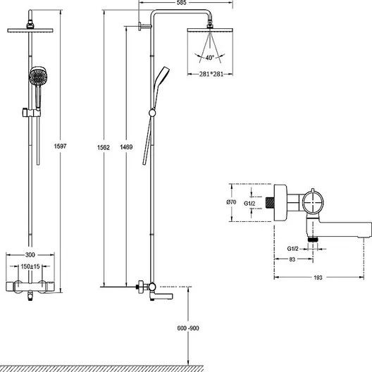 - Форма верхнего душа: