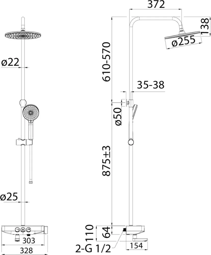 - Душевая система - 1 шт. Инструкция - 1 шт.