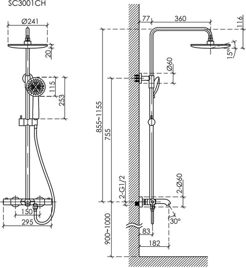 - Форма верхнего душа: