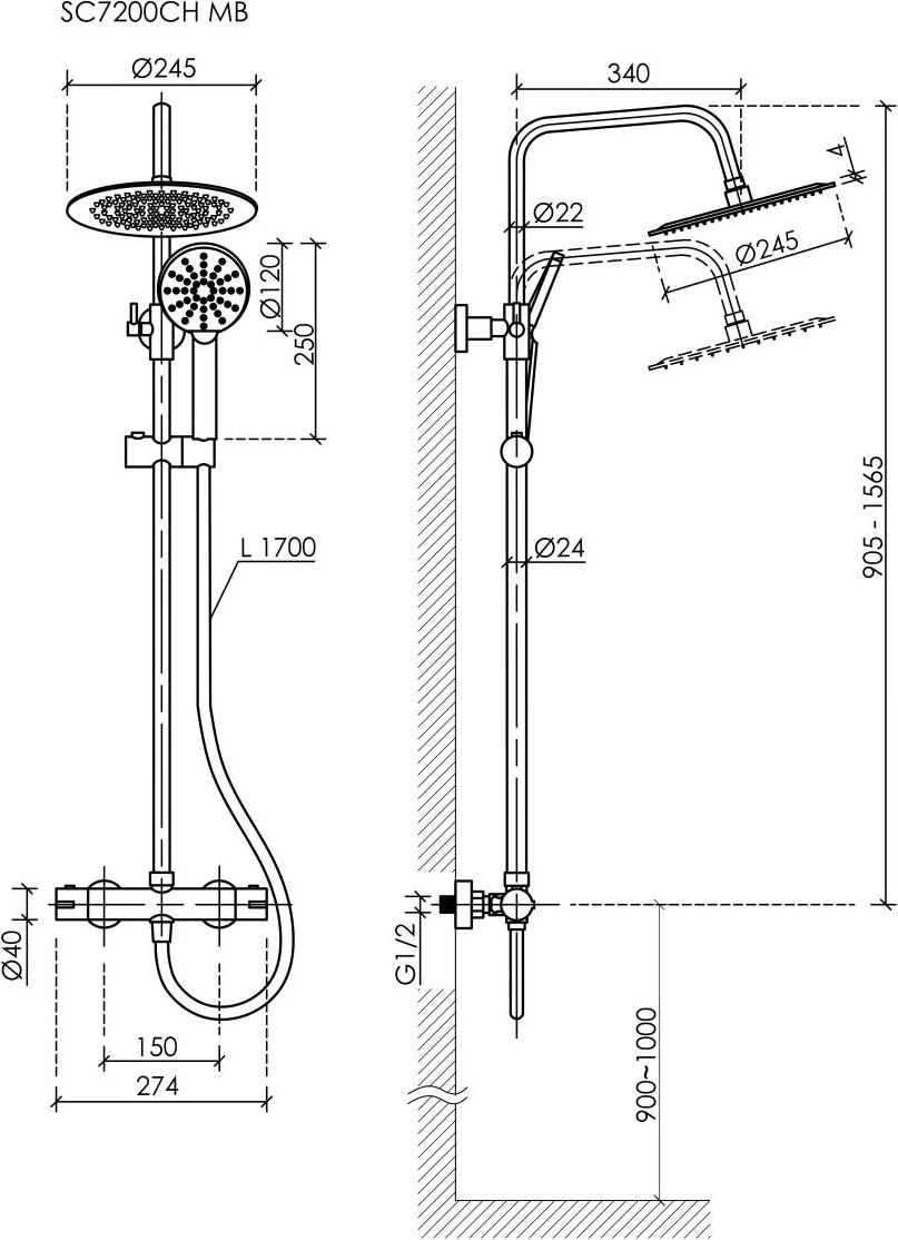 - Металлический верхний душ, диаметр- 245 мм, с регулировкой наклона