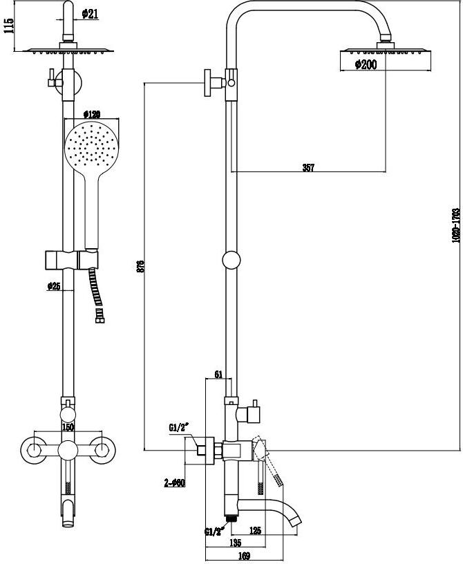Душевая система Voda Vessel VST220VSL