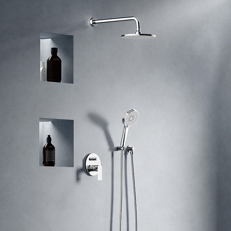 Встраиваемая душевая система из коллекции Apollo станет центром притяжения ванной комнаты. Тонкие линии и четкие грани в сочетании с массивными формами создают исключительную коллаборацию стиля.