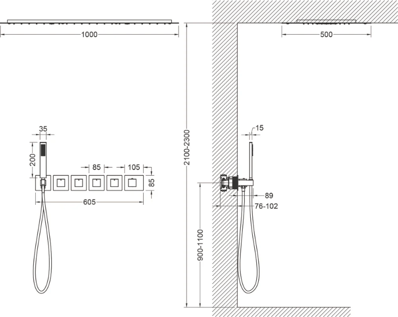 - душевая лейка, верхний душ, душевой шланг, смеситель