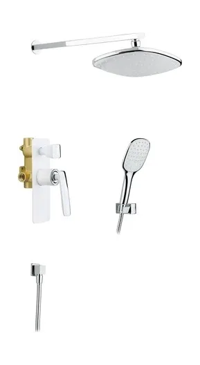 - душевая лейка, верхний душ, держатель душевой лейки, душевой шланг, смеситель