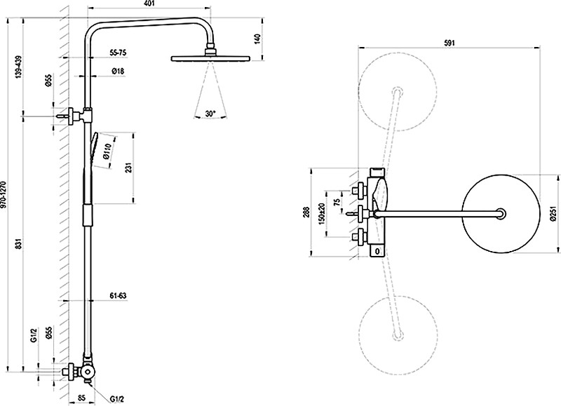 - Размер верхнего душа, см: