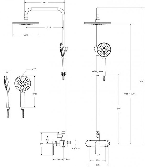 Дополнительная информация: регулируемая высота верхнего душа