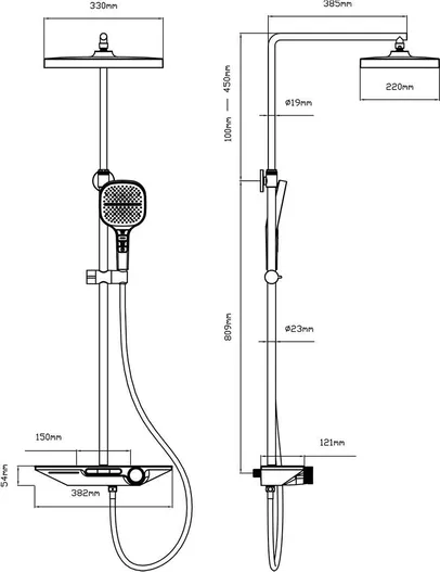 - Верхний душ в комплекте: