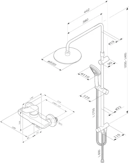 - Душевая система - 1 шт. Инструкция - 1 шт.