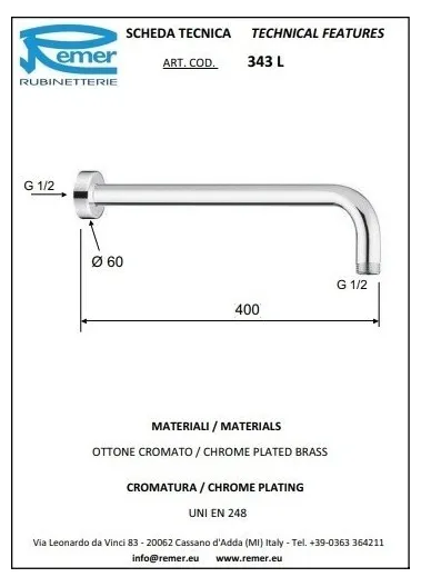 Кронштейн для верхнего душа Remer 343L40BG 40 золото брашированное УТ-00167805
