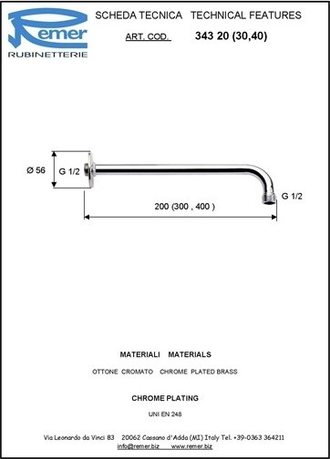 Кронштейн для верхнего душа Remer 34340