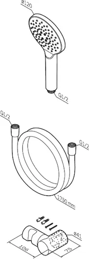 - душевая лейка, держатель душевой лейки, душевой шланг