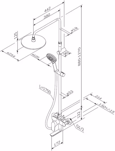 Премиальные размеры и продуманные детали: увеличенный диаметр душевых леек (верхний душ 254 мм и ручной душ 110 мм) позволит ощутить преимущества тропического душа, тогда как увеличенная длина шланга 1750 мм обеспечит свободу движений во время принятия душа. Телескопическая поворотная штанга регулируется по высоте в диапазоне от 880 до 1270 мм, обеспечивая комфорт для людей любого роста, а шаровый шарнир в держателе верхнего душа позволяет регулировать угол его наклона.
