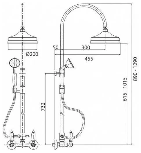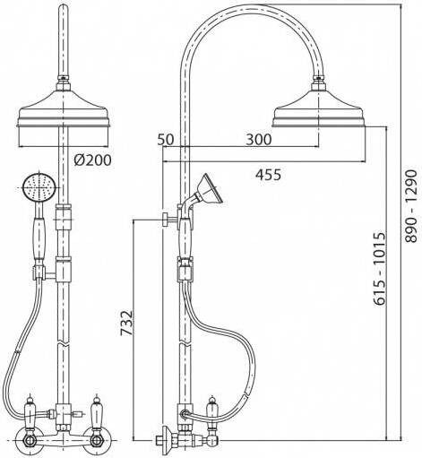 - Высота стойки для душа, см: