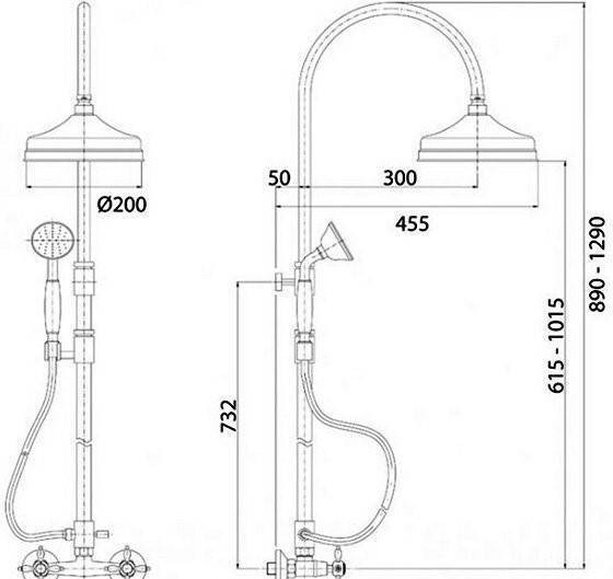 - душевая лейка, душевая штанга, верхний душ, держатель душевой лейки, душевой шланг, смеситель