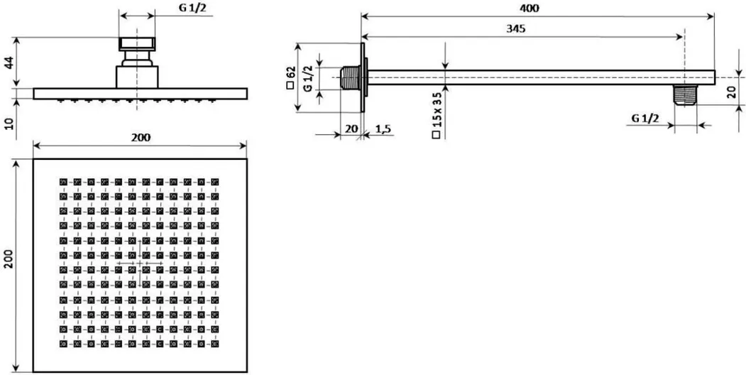 - Верхний душ в комплекте:
