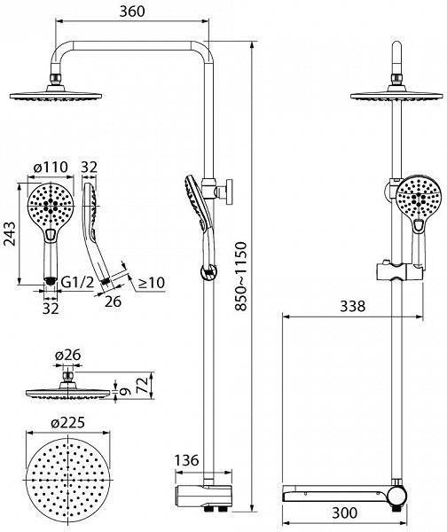 - Душевая стойка - 1 шт. Инструкция - 1 шт.