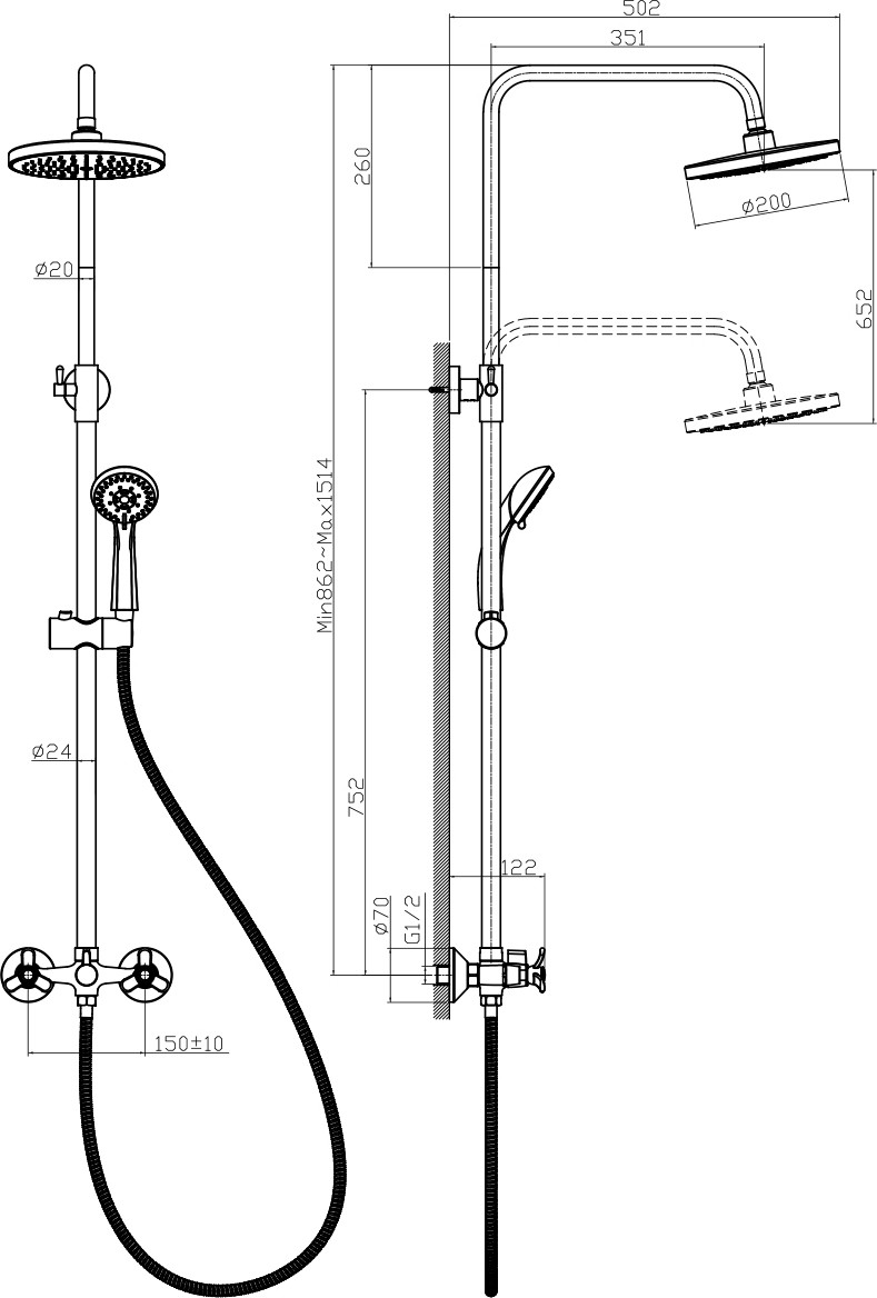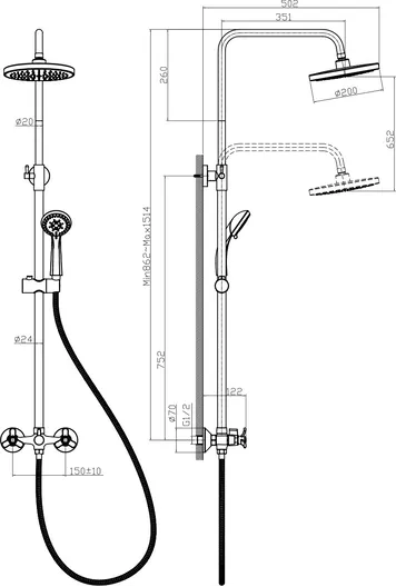 - Душевая система - 1 шт. Инструкция - 1 шт.