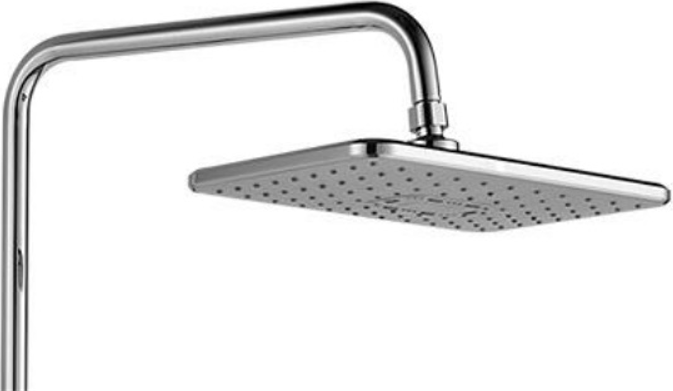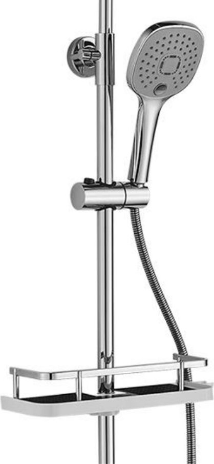 - душевая лейка, душевая штанга, полочка, верхний душ, держатель душевой лейки, душевой шланг, смеситель