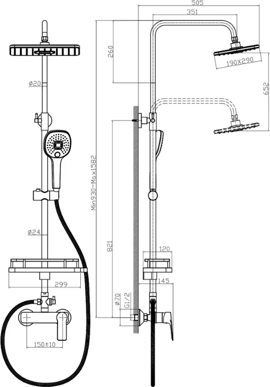 - Душевая система - 1 шт. Инструкция - 1 шт.
