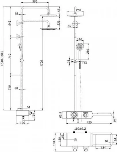 - Размер верхнего душа, см: