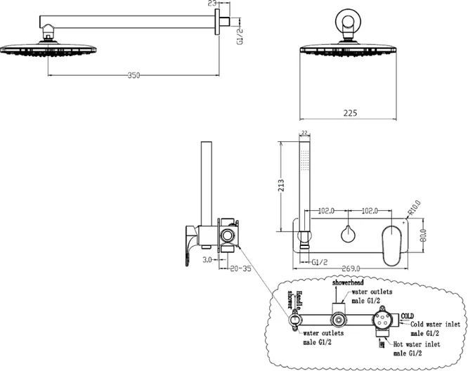 - Форма верхнего душа: