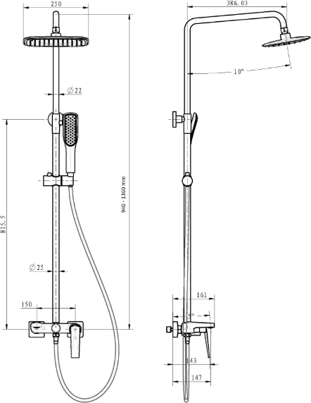 - Душевая система - 1 шт. Инструкция - 1 шт.