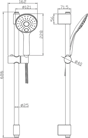 - душевая лейка, душевая штанга, держатель душевой лейки, душевой шланг